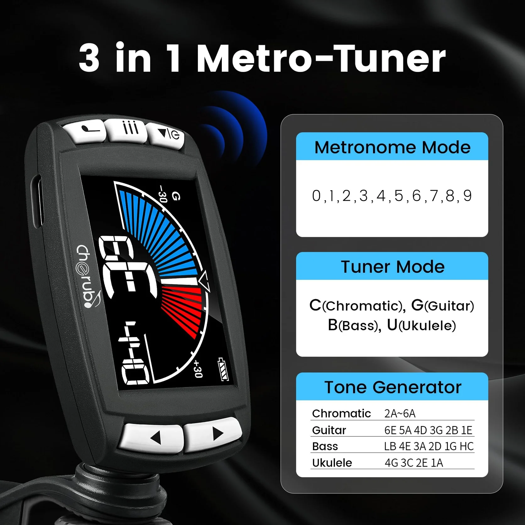 Cherub WMT-560 là thiết bị 3 trong 1 kết hợp Metronome, Tuner và Tone Generator trong một thiết kế nhỏ gọn dạng clip-on. Đây là giải pháp luyện tập tiện lợi cho guitar và nhiều nhạc cụ khác, giúp người chơi tối ưu setup mà không cần mang theo nhiều thiết bị rời.
