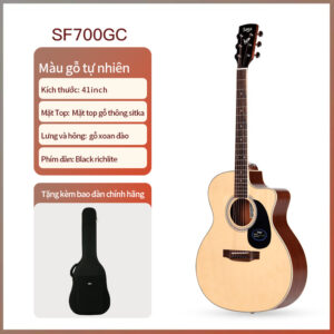 SF700GC được thiết kế theo dáng Grand Auditorium Cutaway với kích thước 41 inch, phù hợp với nhiều thể loại âm nhạc khác nhau. Thùng đàn lớn mang đến âm lượng mạnh mẽ, âm bass trầm ấm và âm treble vang, sáng rõ. Thiết kế khuyết trên thân đàn giúp người chơi dễ dàng tiếp cận và bấm những nốt cao trên cần đàn.