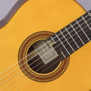 Mặt trên của đàn được làm từ gỗ Spruce nguyên tấm, nổi tiếng với khả năng tạo ra âm thanh sáng và đầy sức sống. Gỗ Spruce không chỉ giúp tăng cường độ vang mà còn mang lại âm sắc rõ ràng, lý tưởng cho nhiều thể loại âm nhạc. Trong khi đó, mặt lưng và hông đàn được chế tác từ gỗ Rosewood, mang lại độ sâu và sự ấm áp cho âm thanh, giúp mỗi nốt nhạc trở nên tinh tế và đầy cảm xúc.