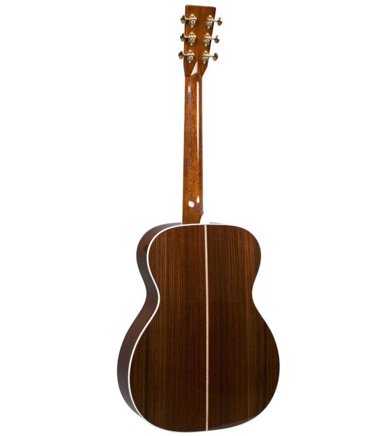 Lưng và hông của Martin 000-42 được chế tác từ East Indian Rosewood, loại gỗ nổi tiếng trong ngành sản xuất đàn guitar nhờ khả năng cộng hưởng âm thanh tuyệt vời. Gỗ East Indian Rosewood giúp cân bằng âm thanh, đặc biệt là ở dải bass và trung, làm cho âm thanh trở nên đầy đặn và mạnh mẽ hơn. Gỗ Rosewood cũng giúp âm thanh trở nên ấm áp, tươi sáng và chi tiết, đồng thời tạo nên một sự cộng hưởng mạnh mẽ, đặc biệt khi chơi những kỹ thuật phức tạp như fingerstyle.