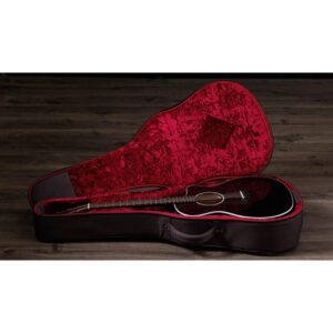 Mặt top của 214ce-BLK Plus được làm từ gỗ spruce nung (torrefied spruce), loại gỗ đã qua xử lý nhiệt để tăng độ bền và mang lại âm thanh “chín mùi” giống như những cây đàn đã qua thời gian sử dụng lâu dài. Quá trình nung gỗ giúp giảm độ ẩm tự nhiên bên trong, tạo ra một âm thanh ấm áp, giàu cảm xúc và có chiều sâu hơn so với gỗ spruce thông thường.