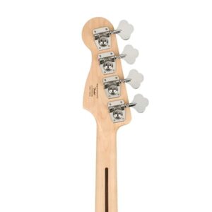 Squier Affinity Precision Bass PJ Pack SS, Maple Fingerboard, Black – 4 Strings được trang bị vintage-style open-gear tuning machines với phần cứng Chrome, đảm bảo độ chính xác khi lên dây và giữ cao độ ổn định. Đầu cần với logo Squier mang phong cách cổ điển. Ngựa 4-Saddle Standard Bridge với 19 mm string spacing đảm bảo truyền âm tốt. Black Dot inlays trên mặt phím Maple và 3-Ply Black pickguard tăng tính thẩm mỹ hiện đại. Truss rod cover và 4-Bolt Squier neck plate làm từ vật liệu chất lượng, tăng độ bền. Gói sản phẩm bao gồm Fender Rumble 15 amplifier, padded gig bag, strap, 10′ cable, và 3-month Fender Play subscription, hỗ trợ sử dụng và học tập tiện lợi.