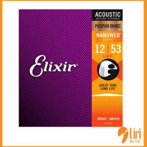 Elixir 16052 Phosphor Bronze NANOWEB® Light (.012-.053) là dây đàn dành cho ghita acoustic có lõi bằng đồng và được phủ một lớp Nanoweb siêu mỏng mang đến âm thanh âm áp và cảm giác tư nhiên như dây không phủ