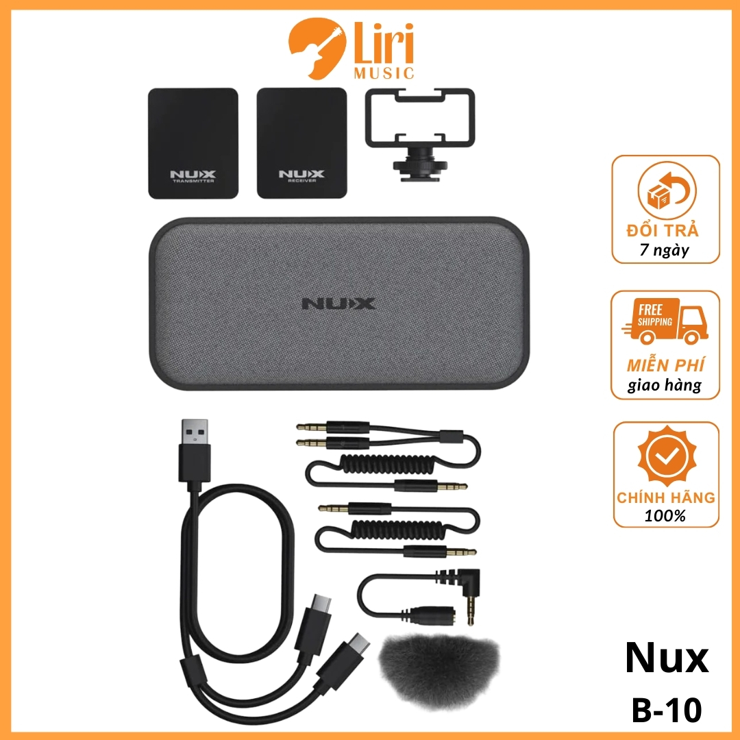 NUX B-10 Vlog là một hệ thống micrô không dây nhỏ gọn và nhẹ, bao gồm một bộ thu và một bộ phát, có thể đạt được khoảng cách không dây lên đến 30 mét. NUX B-10 có thể cung cấp kết nối không dây ổn định, ghi lại âm thanh chất lượng cao, ít tạp âm và độ trễ thấp. Nó tương thích với hầu hết các máy ảnh/điện thoại di động/máy tính bảng hiện có. Và đó là một giải pháp để quay Vlog, đánh giá sản phẩm, phát biểu sự kiện, phát sóng trực tiếp và hội thảo trên web.